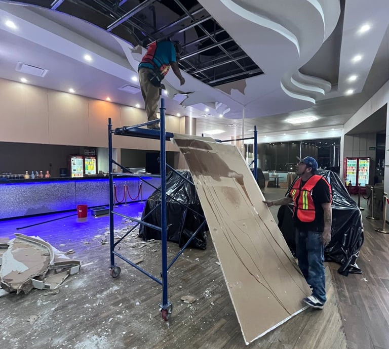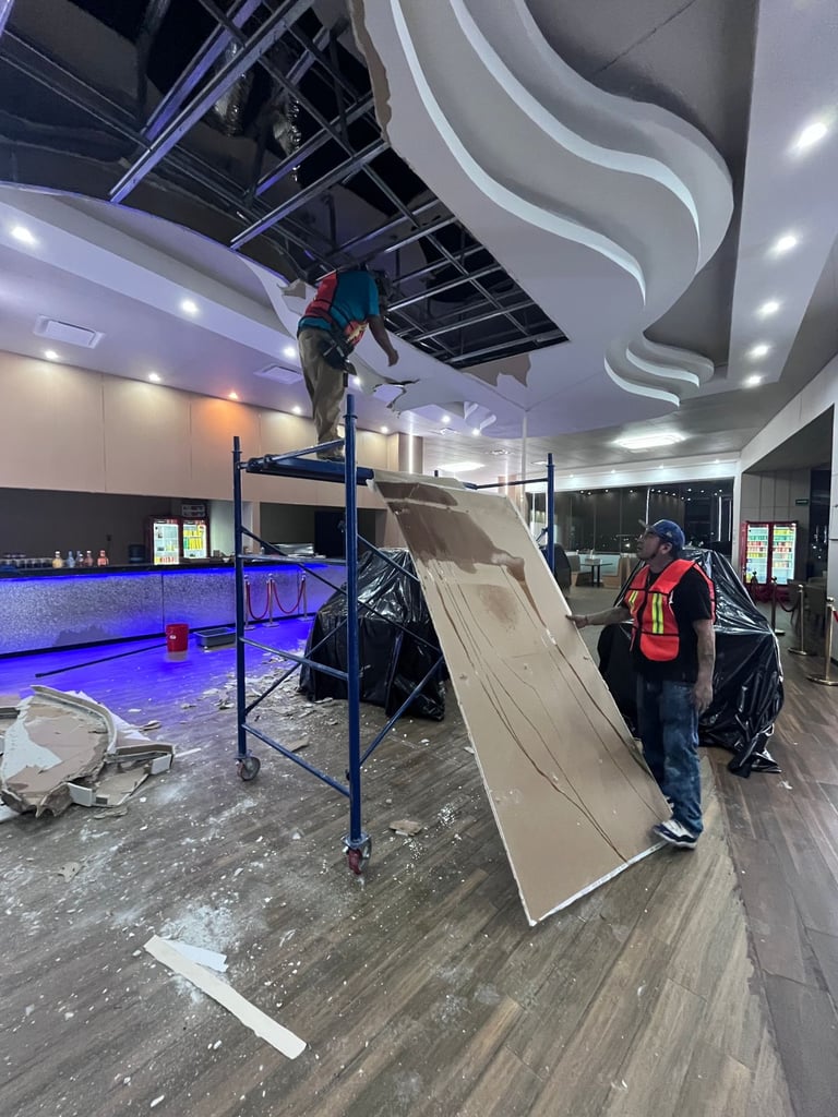 Demolición y reposición de plafón decorativo, horario nocturno en plaza La Fe, San Nicolás de los Garza. Proyecto Ejecutado año 2024