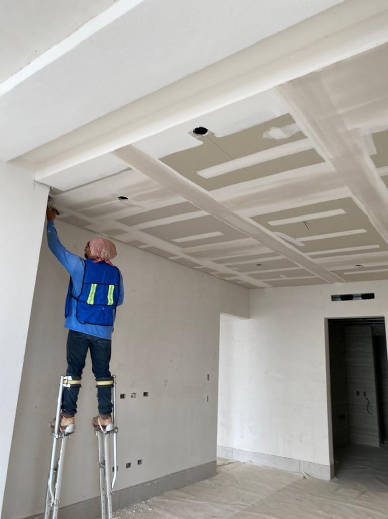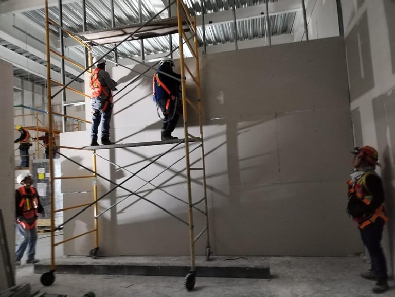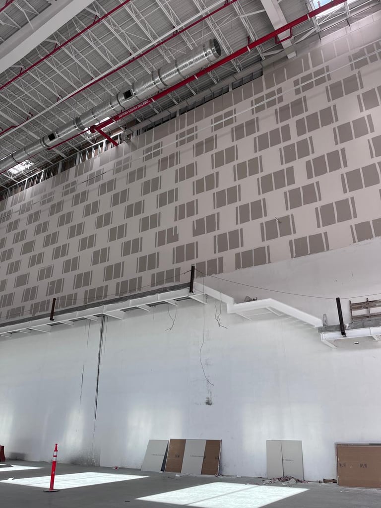 Contrato Tablaroca y Acabados / Instalación de muros de Tablaroca acabado nivel 3 a una altura máxima de 10mts, superficie ejecutada 6,654m2 en jornales mixtos y nocturnos / Grupo Garza Ponce & Onix Distribuidora, ubicación del proyecto Ciénega de Flores NL. Periodo de Proyecto 2024-2025