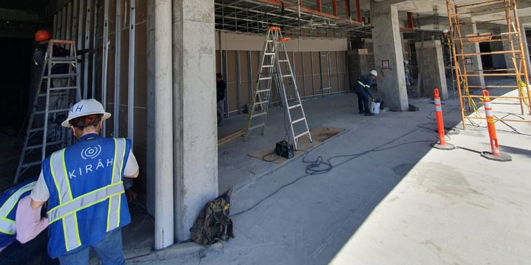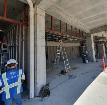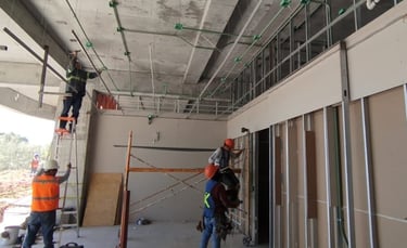 Instalación de muros de Tablaroca acabado nivel 3 a una altura máxima de 10mts, superficie ejecutada 6,654m2 en jornales mixtos y nocturnos en apoyo a grupo Garza Ponce & Onix Distribuidora, ubicación del proyecto Ciénega de Flores NL.