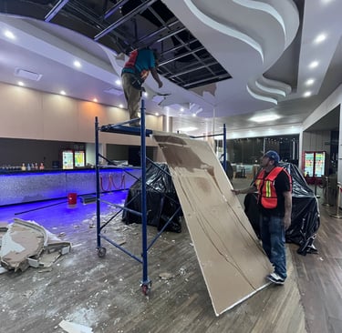 Demolición y reposición de plafón decorativo en restaurante ubicado en plaza La Fe, San Nicolás de los Garza.