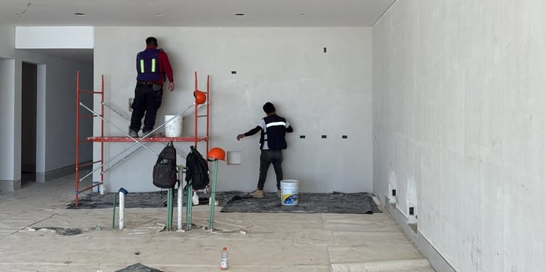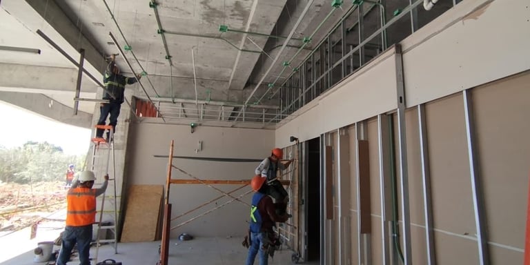 Ejecución de Plafones y Muros de Tablaroca acabado Nivel 3. Proyecto como subcontratista de proyecto ubicado en Zuazua NL.